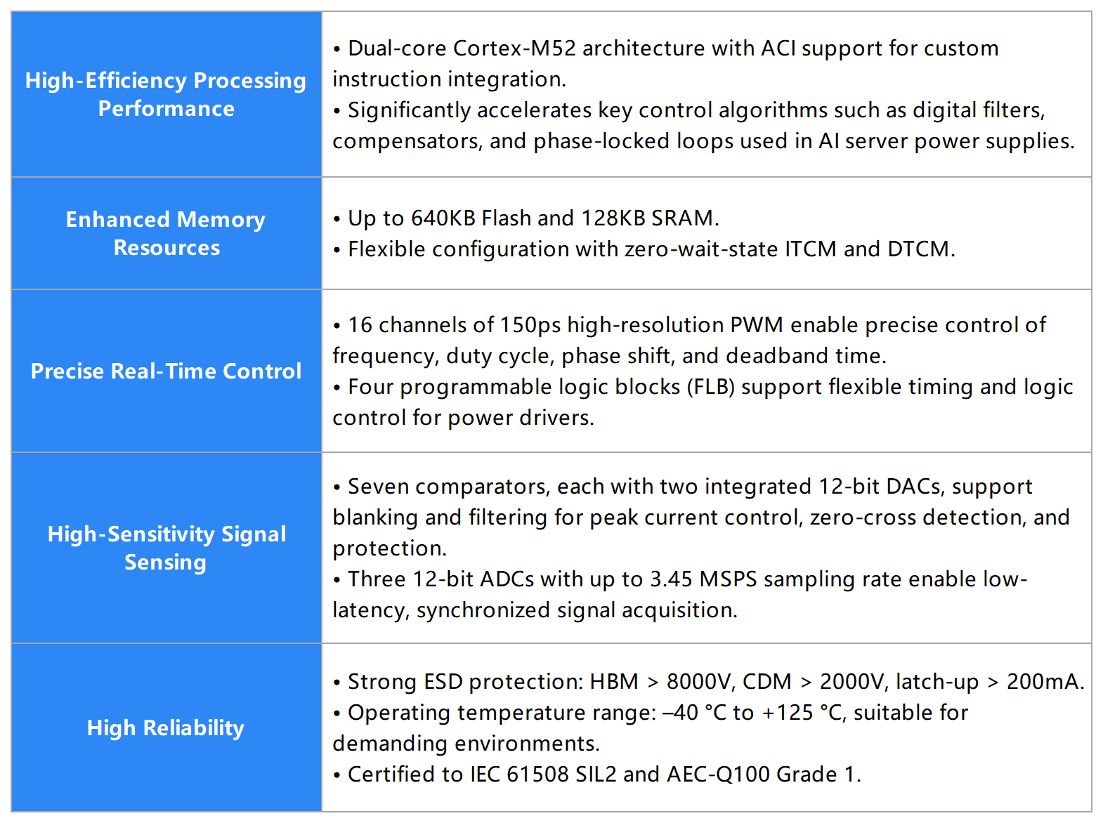 • The G32R501 integrates eight 12-bit ADC channels for real-time sampling of input voltage, inductor current, bus voltage, and output voltage/current.