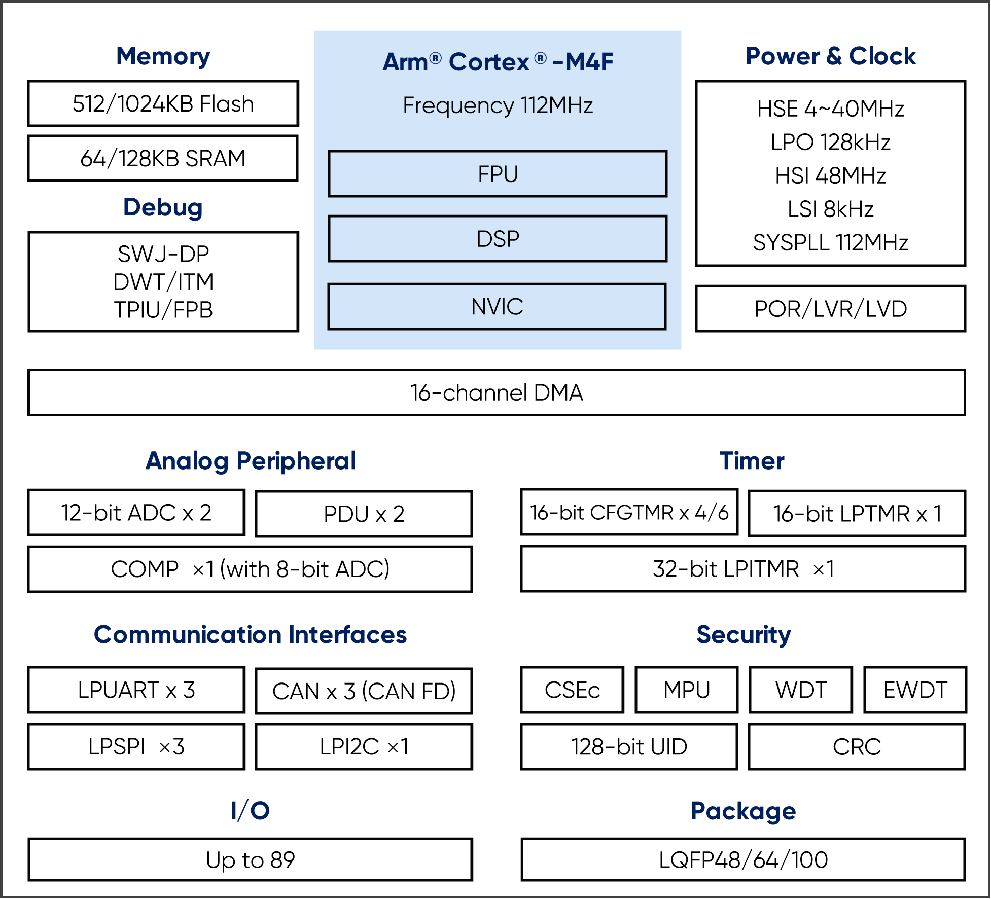 - 12-bit ADCs: 2, external channels: 16+13/16+16